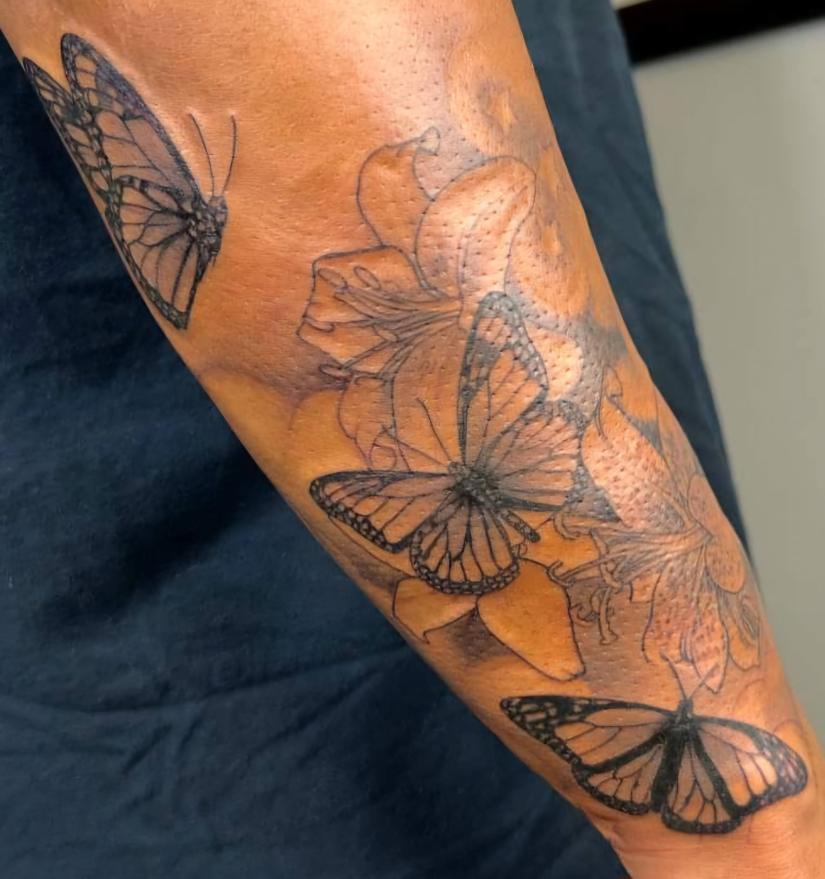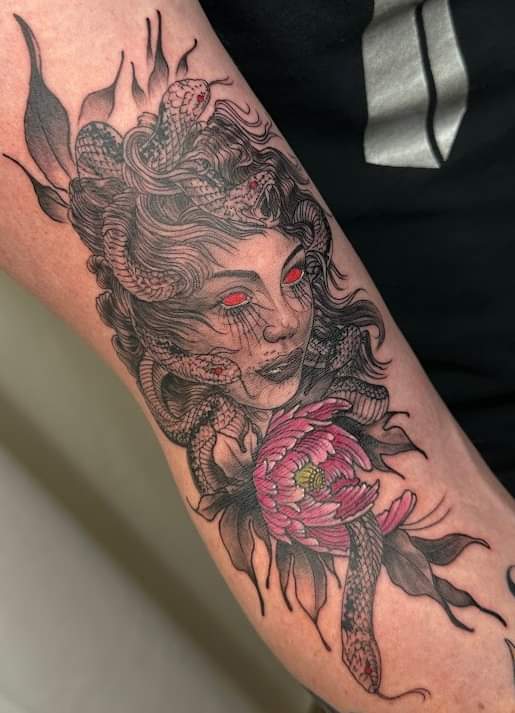 Tish is a talented artist herself designing many of the flash sheets for Neck Deep’s tattoo specials as well as is constantly coming up with original fun tattoo flash to inspire clients. Tish also creates the content for Neck Deep Tattoo’s social media (Facebook, Instagram, TikTok) and comes up with fun creative ideas for videos to showcase the artists on a more personal level in addition to their art.
